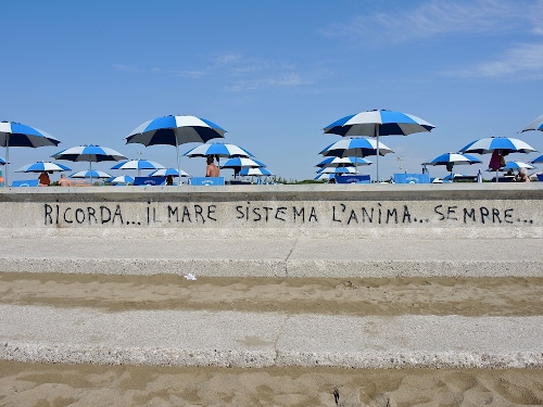 Foto dell'autore sangiopanza candidata al contest fotografico ombrelloni su Dizy. Data inserimento: martedì 27 maggio 2025. Titolo: Scritta ed ombrelloni.